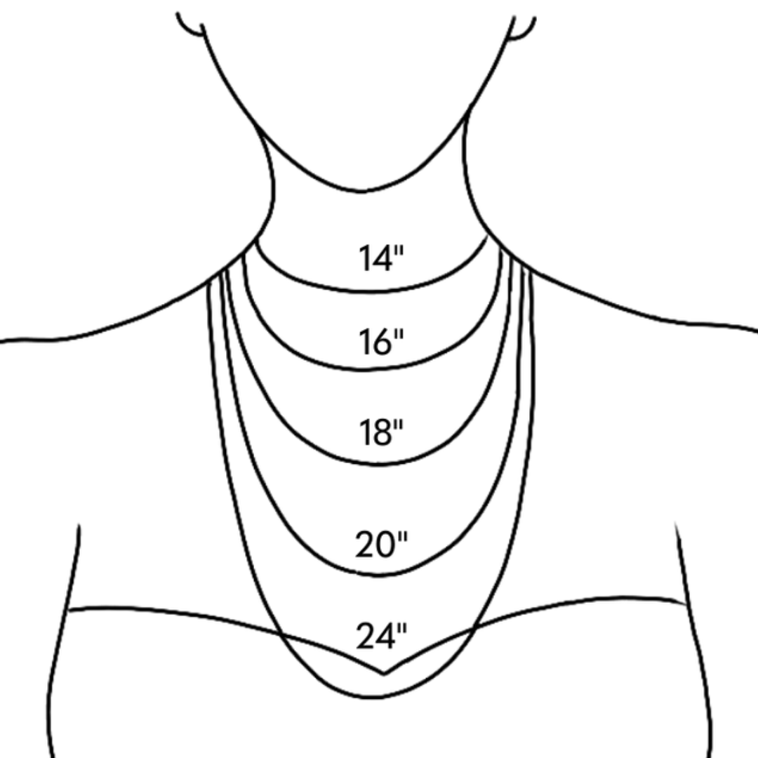 To get the best fit, we recommend measuring your neck to where you want the necklace to fall. You can use a sewing tape measurer to achieve this. If you do not have one, you can use a common household item, such as headphones, charging wires, or a piece of string/yarn - then measuring that household item with a ruler.